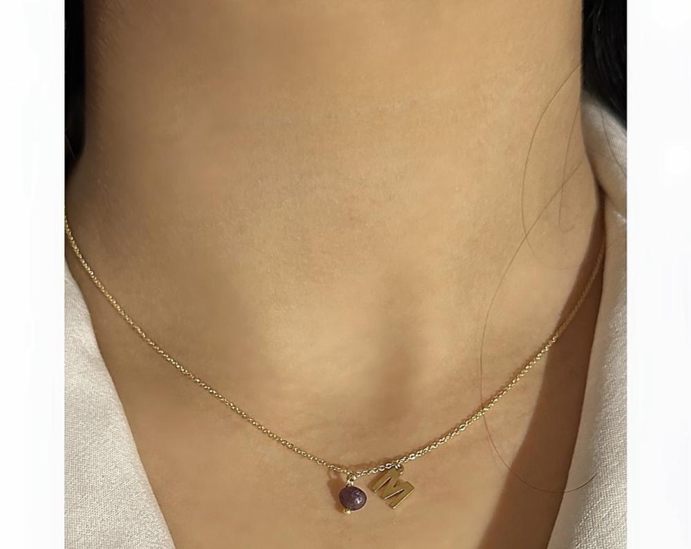 إضفي لمسة من الفخامة والجمال مع سلسال الحرف مزود بحجر العقيق الكريم. تصميمه الراقي يسمح لكِ بإضافة الحرف الذي يعبر عنكِ، مع إضافة حجر العقيق المميز لإضفاء جاذبية لا مثيل لها. يمكن تخصيصه بالحروف أو الأبراج لإضفاء طابع شخصي على إطلالتكِ احصلي عليه الان من متجر ريبونبو
