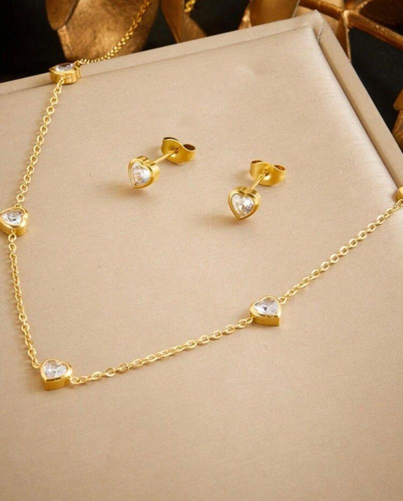 حلق القلب والكرستال المطلي ذهب بشكله الانيق 💕